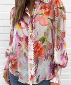 Delilah Shirt – Peach Purple Floral