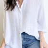 Light and lovely on, it falls beautifully, and the sleeves are nice. Functional buttons all the way down, it feels really nice on.