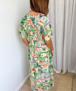 Loose, light and lovely on, we love the elastic shirring across the bust and at the back – it enables it to drop and float beautifully. A fun print which is nice and fresh, it’s just easy and so comfy.