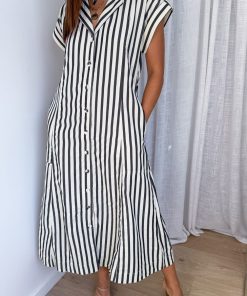Be the first to review “Daire Dress – Cream Black Stripe” Cancel reply