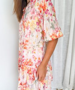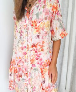 So pretty, we love everything about this one. The print is divine, functional buttons, elastic at the cuffs, and it comes with a belt. The frill at the bottom is lovely too! Cute all year round.