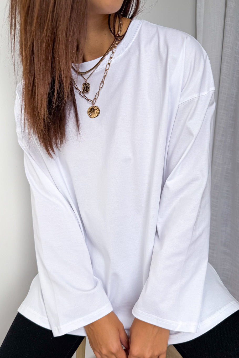 An easy basic this long sleeve is one you’ll reach for again and again. A boxy shape which is flattering, a good length, and the thumb holes add a nice detail. It layers beautifully or works perfectly on its own, easy, practical, and so good to wear.