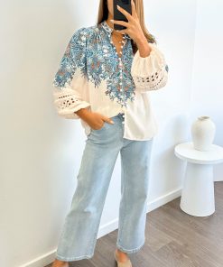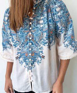 This blouse is really beautiful – the print, the shape, the sleeve detail, the way it sits, and the print. The lace trim on the puffy sleeves and the fabric-covered buttons are a lovely touch – subtle, but they really elevate it. For work, weekends, dinners out – it’s an easy go to piece you’ll feel great in.