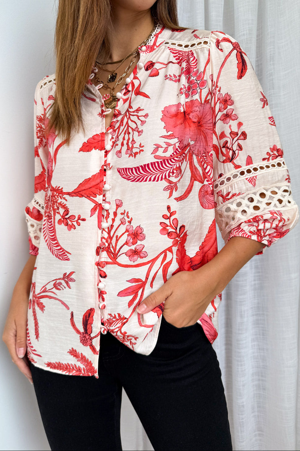 Be the first to review “Estina Blouse – Cream Red” Cancel reply