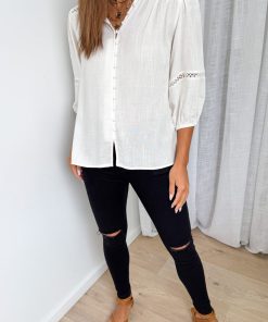 A little bit structured, but also not. Does that make sense? The fabric is a little bit thicker so it almost looks a little structured, but it sits really nicely. Cute sleeves and buttons, it’s a little bit boho yet totally wearable.