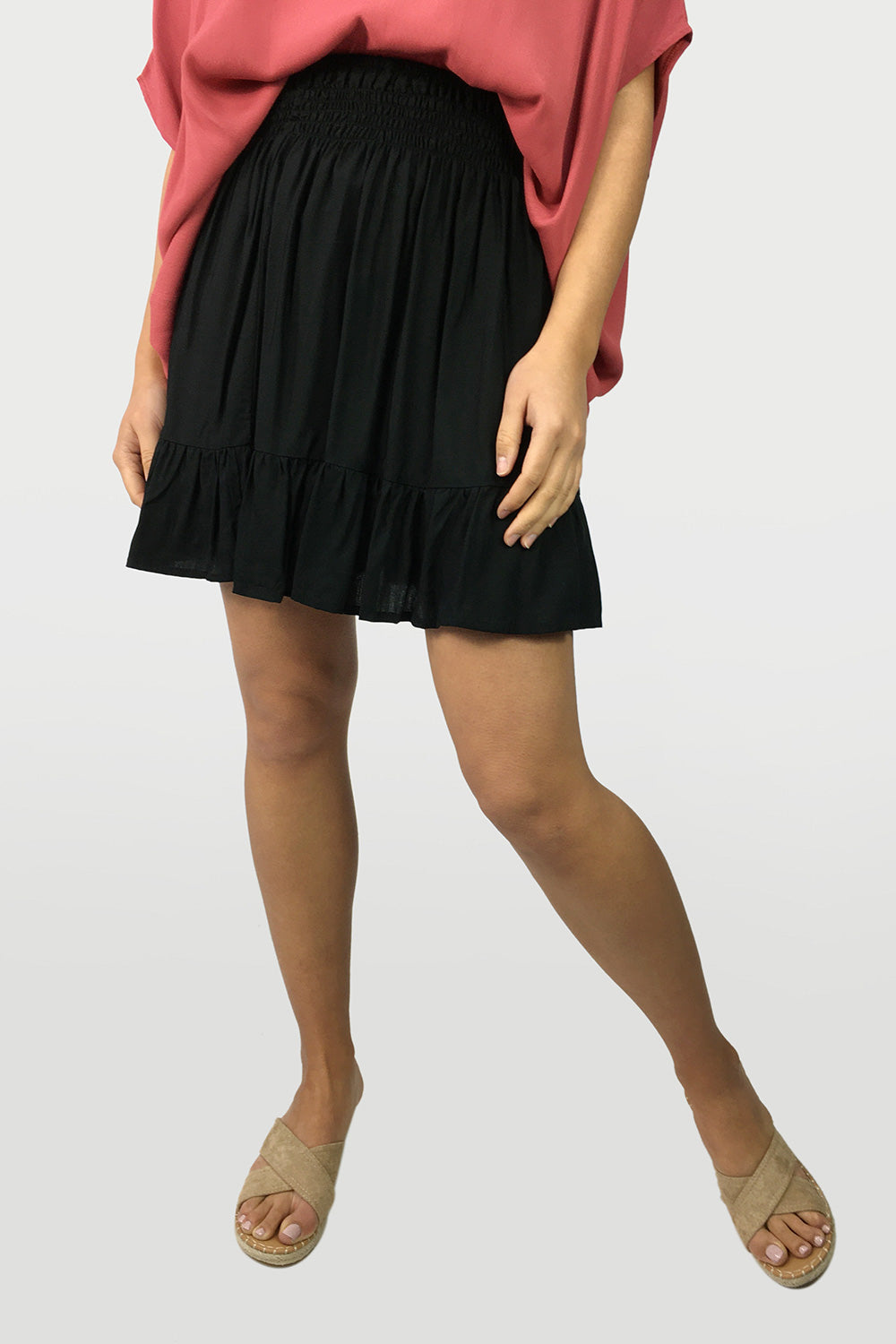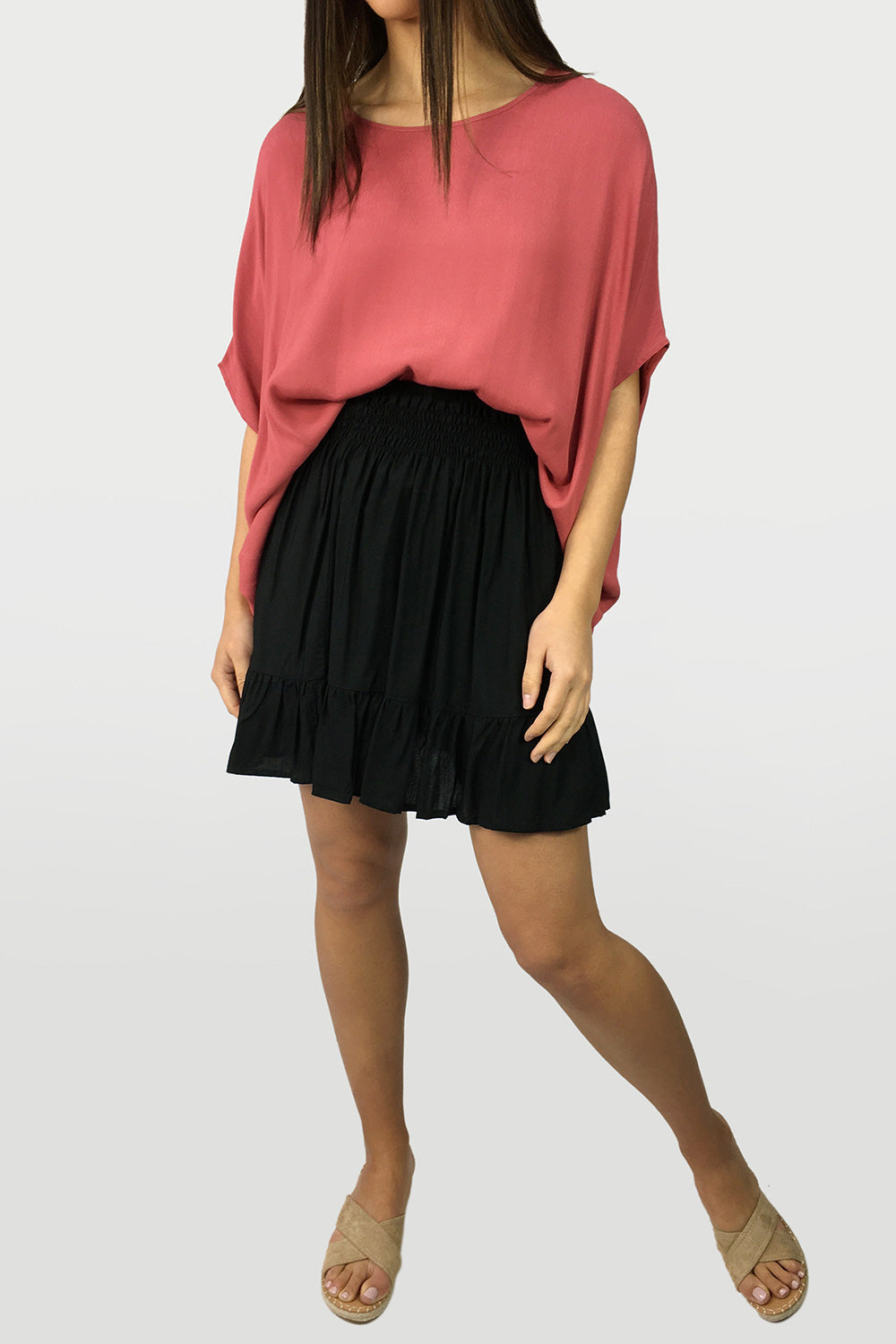One of our favourite mini skirts EVER, I think because it’s not too mini. Featuring a thick elastic waist, you can wear it as high or as low as you like. So good.