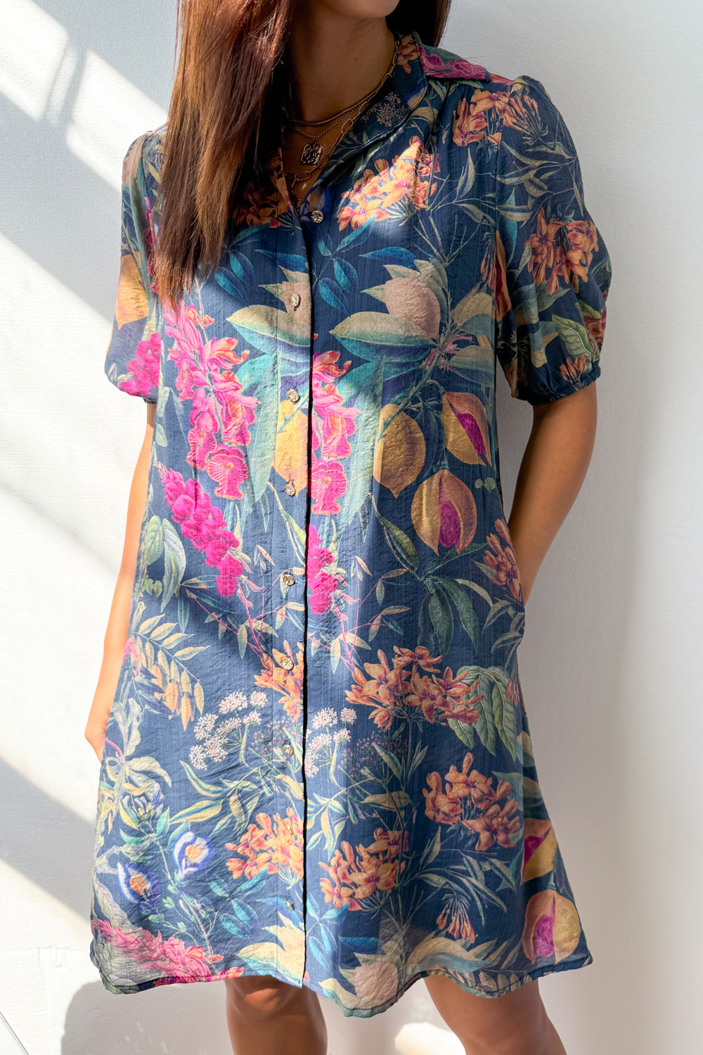 This dress is beautiful – the print is so nice, and the colours are just so pretty. It’s functional too – pockets, buttons all the way down, and it’s a good length – shorter but not short. And it comes with a belt, or you can add your own – or wear it loose. Love.