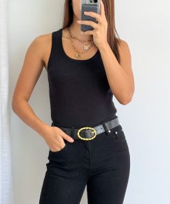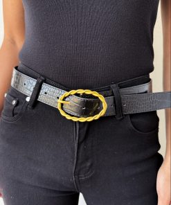 The perfect little belt with gold twist detail that will match back with anything! Especially good with jeans.