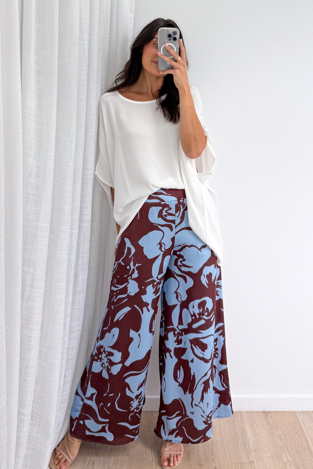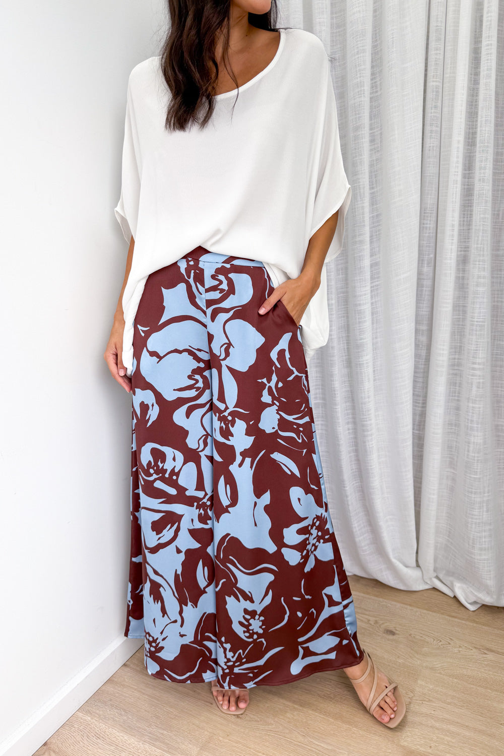 Be the first to review “Jamie Satin Pants – Chocolate Abstract Palm” Cancel reply