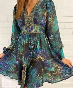 Beautiful and flattering, it’s like a shorter version of the Lotus Dress. Featuring functional buttons on the bust, diamantes, elasticated cuffs and a fluttery skirt, the print is pretty, and it’s just really nice length.