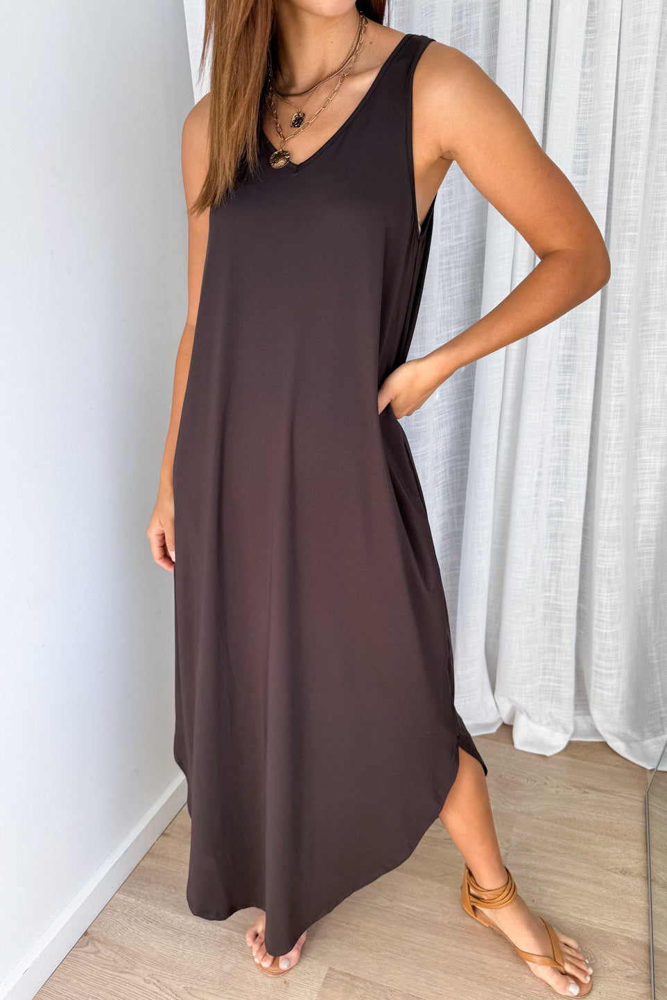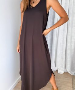 The easiest slip on basic dress to ever exist, we love it so much! I kept the sample about 7 months ago and have worn it so many times, even when it was cold with a cardi on top. The shape is good, it drops perfectly. The shoulder straps are decent, you can wear a bra and you don’t get underarm muffins. It also has pockets. A good, easy length, and a lovely soft fabric.