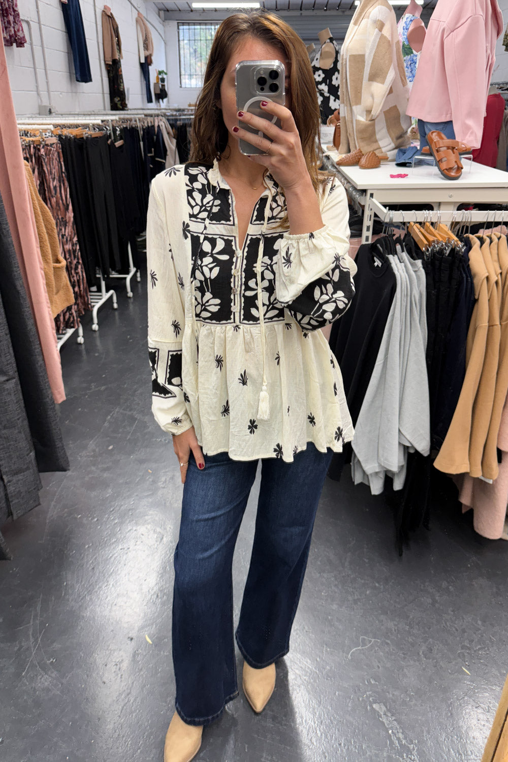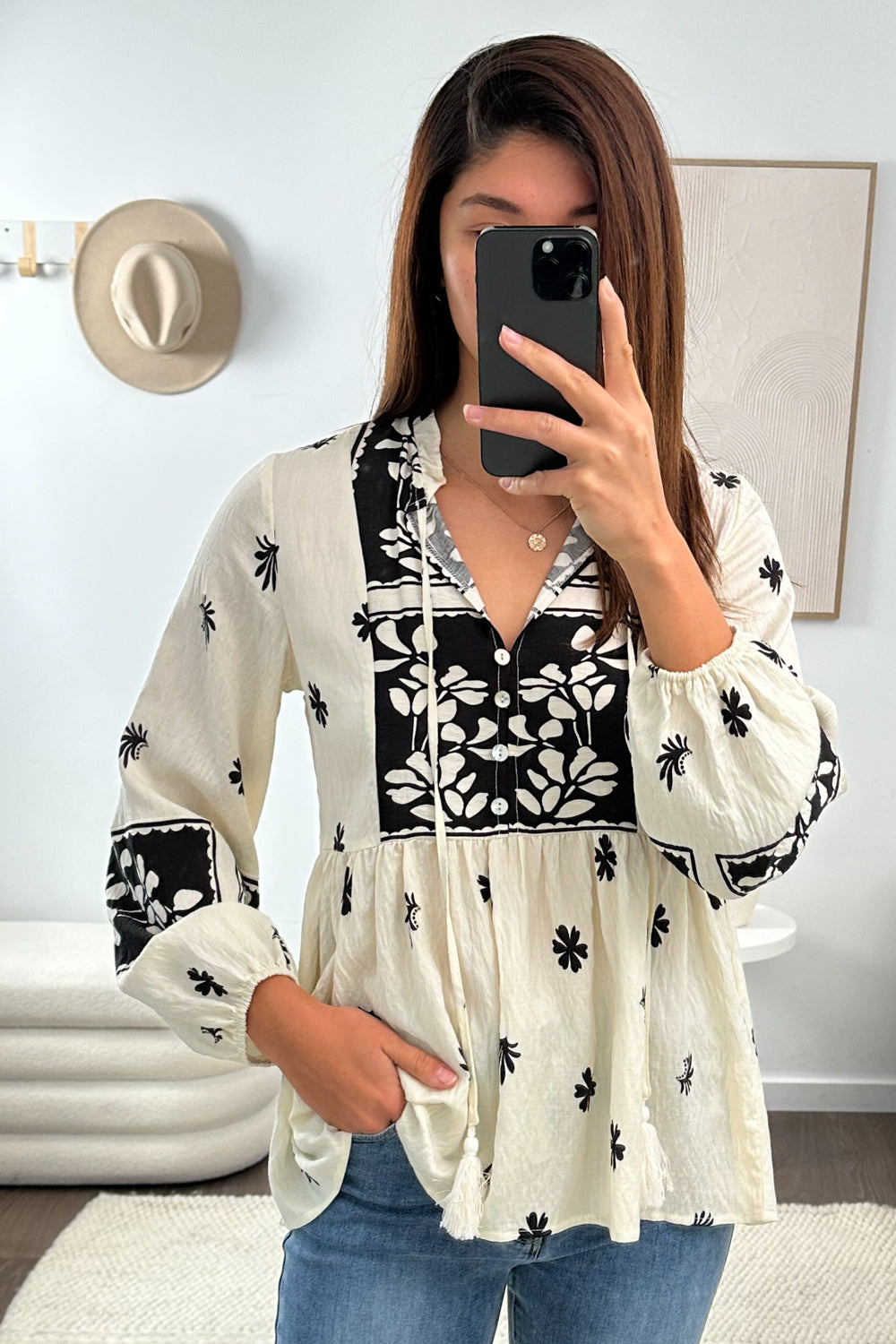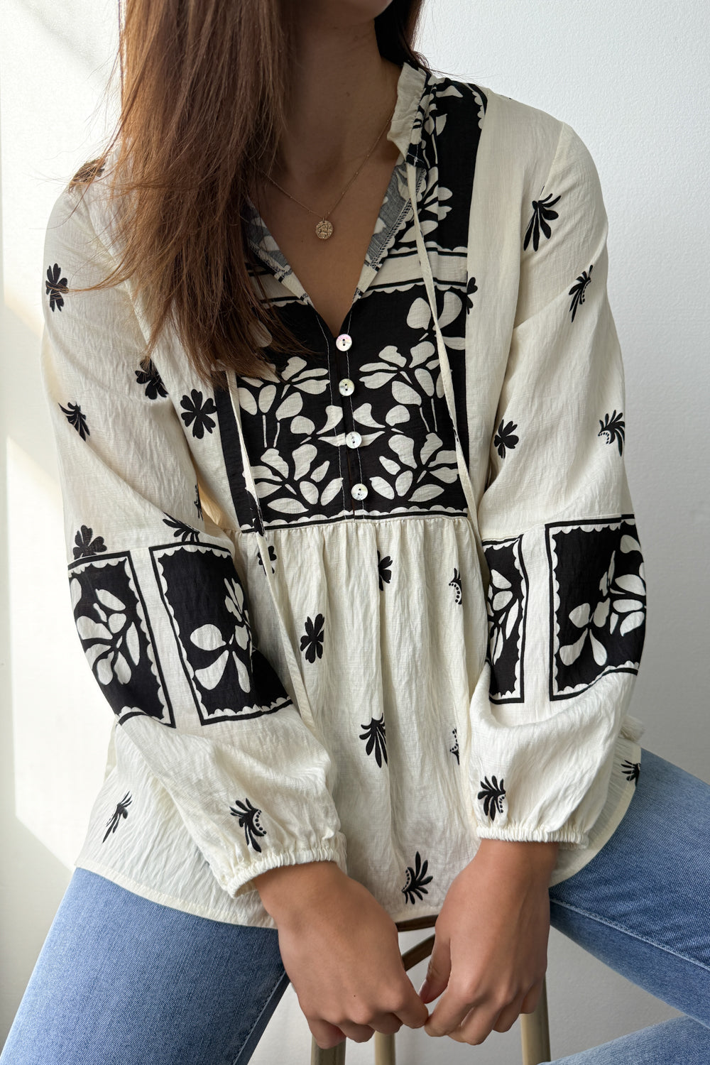 Easy to wear, and easy to style. Tuck it in, wear it loose, push up the sleeves —whatever suits your mood. The boho print makes a statement, and the flowy fabric falls beautifully.