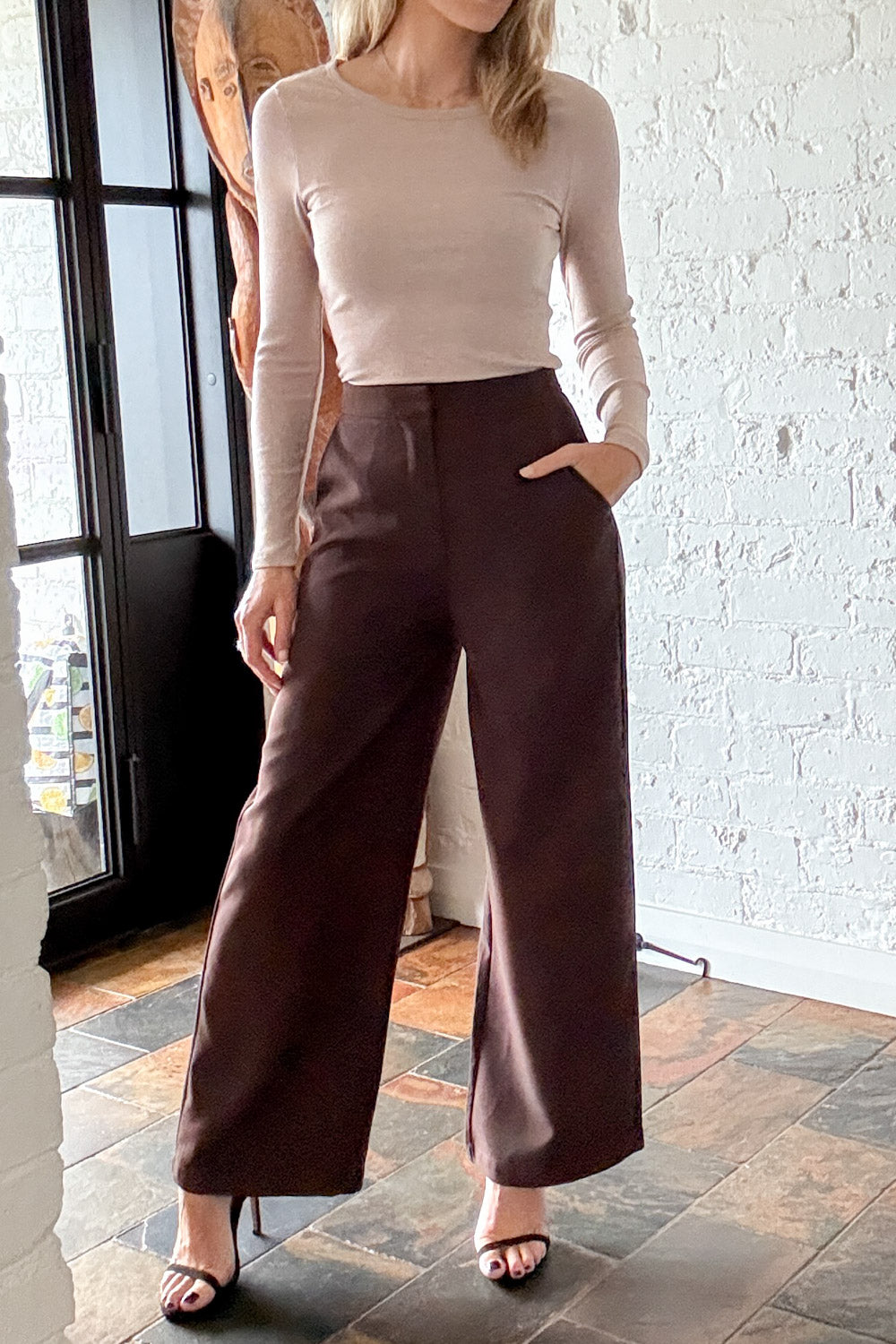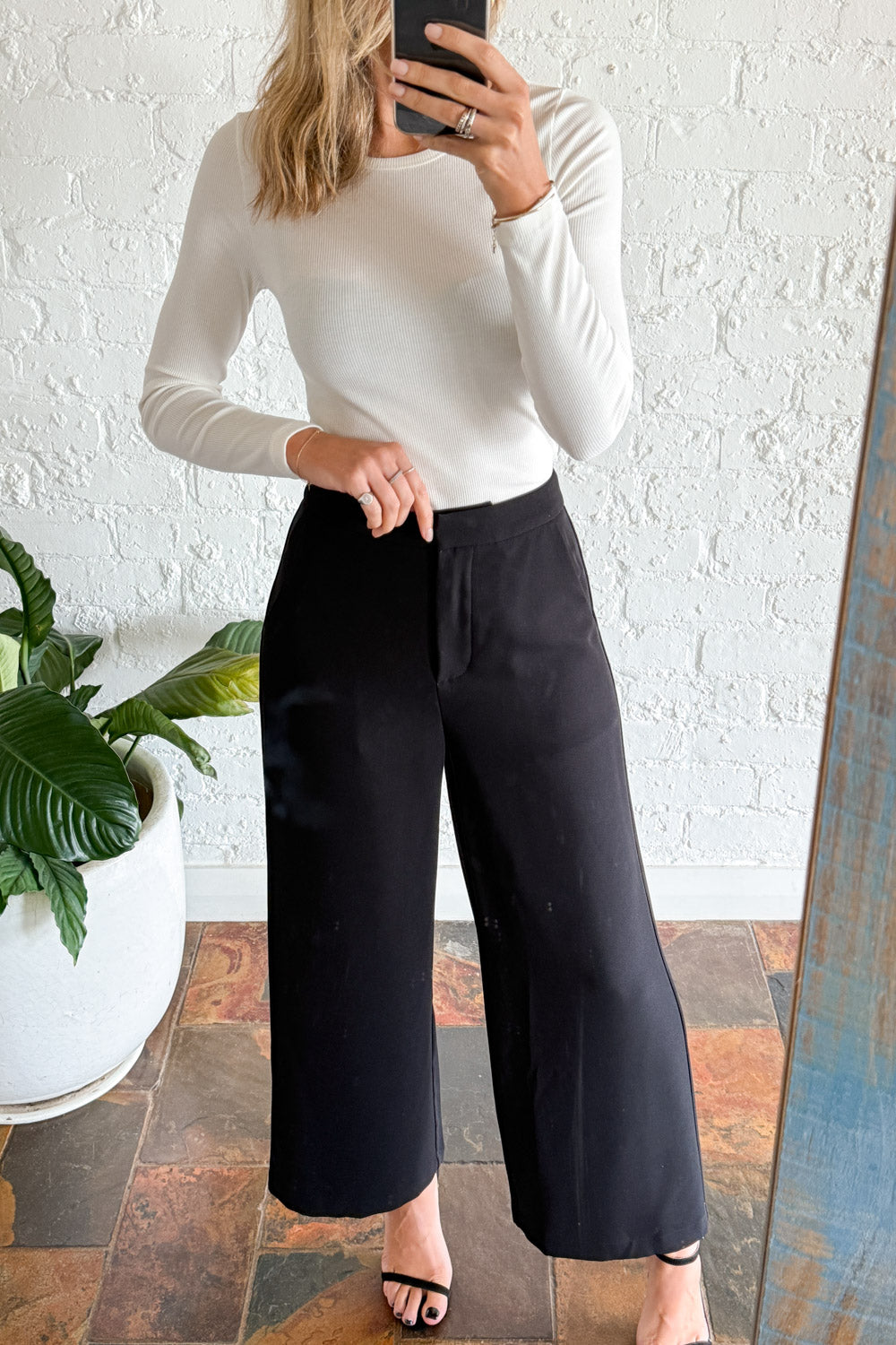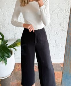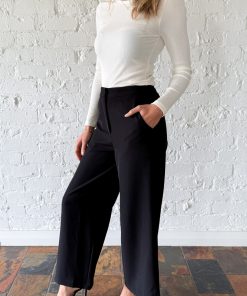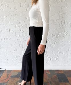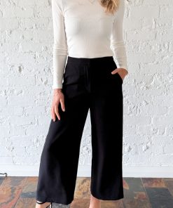 A really nice, simple, classic pant – perfect for work, really good smart casual attire. They fit wonderfully on the hips, the length is good – they’re a little shorter, kind of on the ankle, and they look and feel really good. Faux pockets on the back, they are a mid-rise, and you’ll love wearing them.