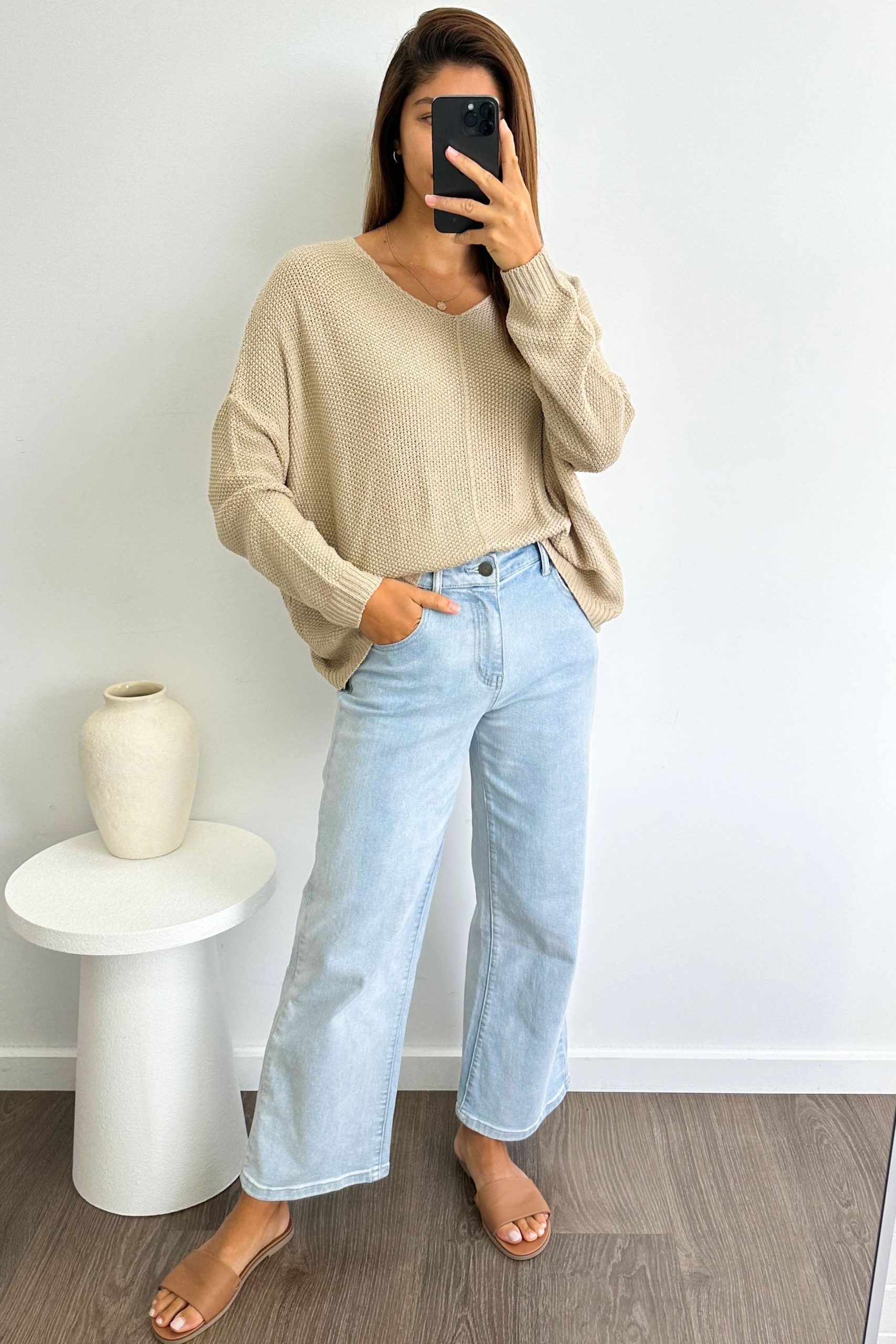 Lightweight and not too heavy, it’s a really good transeasonal oatmeal jumper which you’ll be able to wear all year round, if you layer it when it’s colder. A lovely shape and length, it’s easy to throw on with jeans or tights.