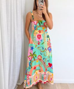 Such a beautiful print on an easy to wear dress which ticks all the boxes. Elastic at the back so it falls beautifully and you won’t get muffins, and adjustable straps. It floats and flows beautifully, and it’s just so beautiful.