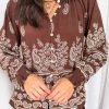 Easy to wear, and easy to style. Tuck it in, wear it loose, push up the sleeves —whatever suits your mood. The boho print makes a statement, and the flowy fabric falls beautifully.