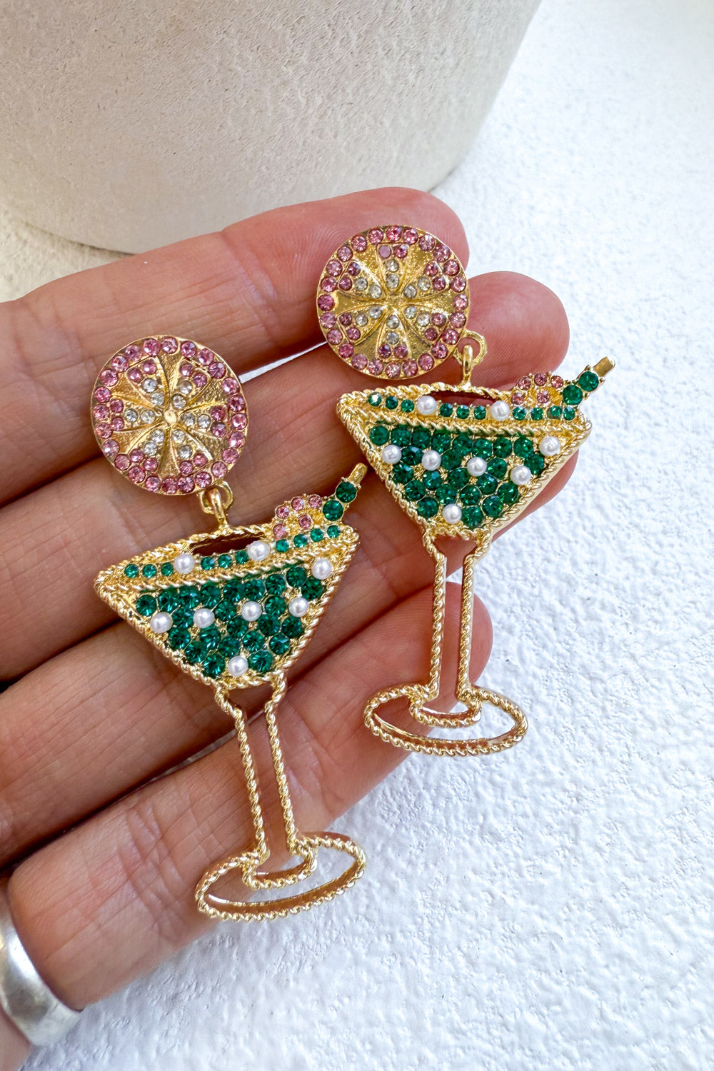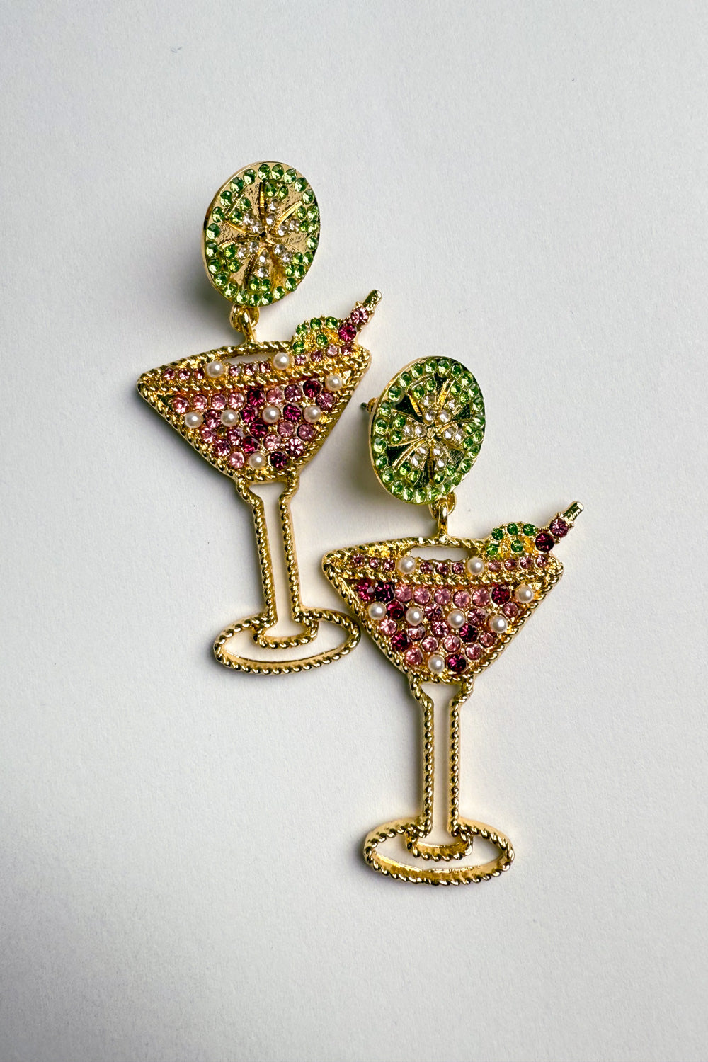 Cute little sparkly martini glasses which are just so fun! Nice and light to wear, as in not heavy on the ears.