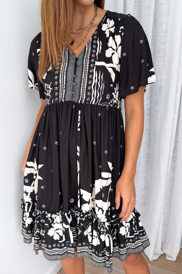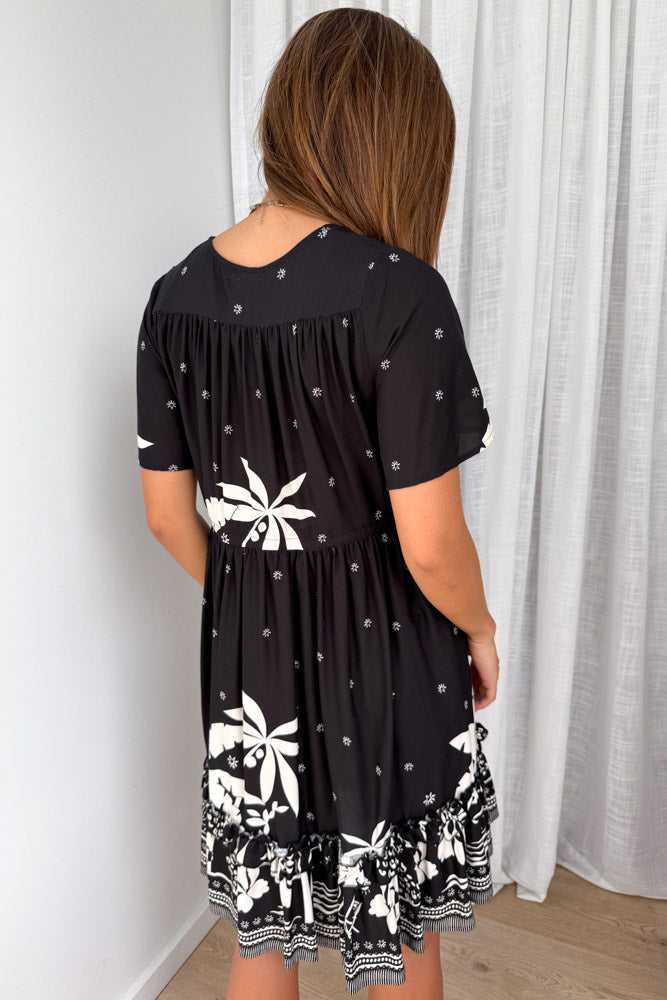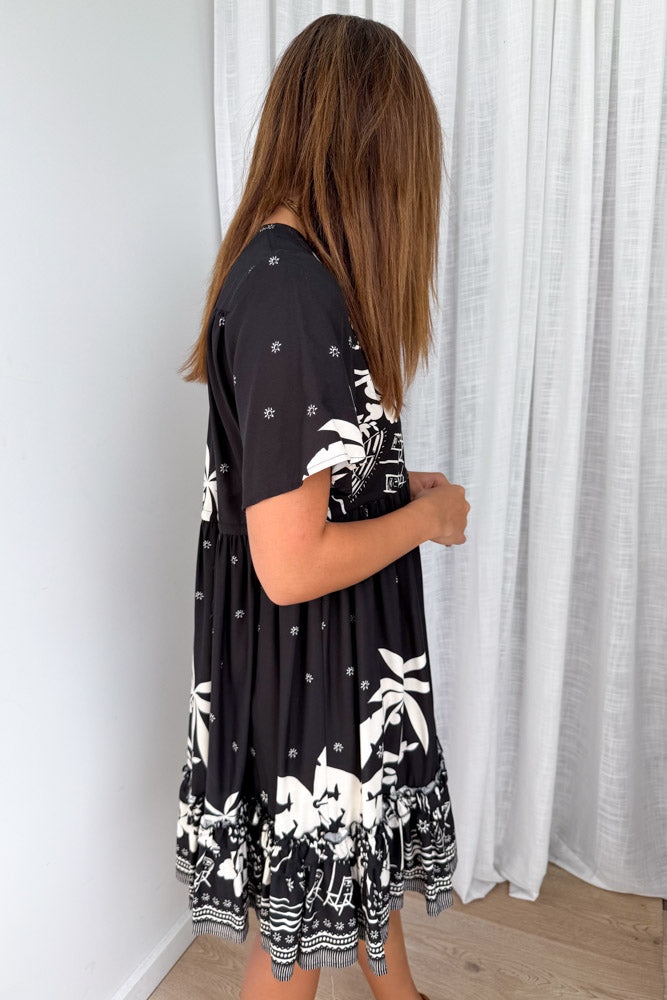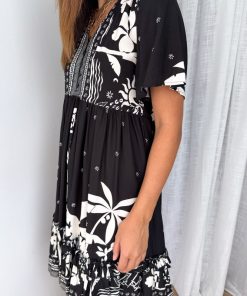 Be the first to review “Sunnie Dress – Black White Palm” Cancel reply
