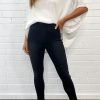 Pretty much the same as our epic Panel Jeans, but without the panel on the knees and a tiny bit thinner. Super stretchy, a good length, and featuring the panel on the tummy – which I know I love. You’ll like them.