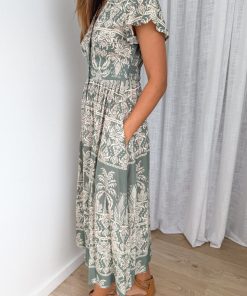 Pip Dress – Green Abstract Palm