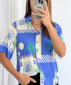 Bali Escape Shirt - Blue Villa Print